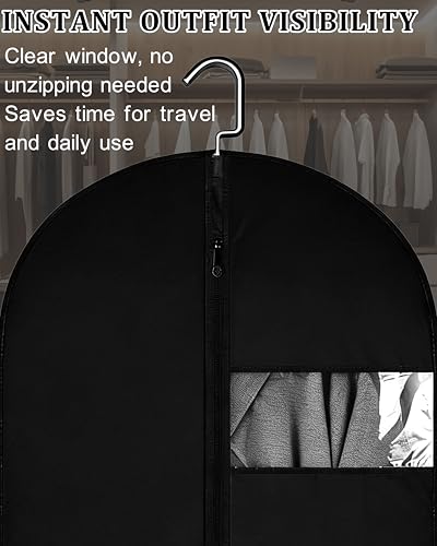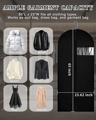 Specification: 65-Inch Garment Bags for Hanging Clothes, Clear Window Dust-Proof Suit Bags for Suits Coats Dresses – Closet Storage & Travel Garment Covers (Black)