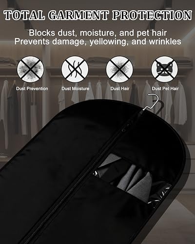 DURABLE & SMOOTH – Made with PEVA, polyester, Oxford, or non-woven fabric, our premium garment bag is tear-resistant, waterproof, and breathable reusable for years. The sturdy, smooth zipper won’t jam, offering easy access to your suit bag, dress bag, or formalwear. These reliable garment bags hold up to travel and storage, protecting your suits, dresses, and everyday pieces with long-lasting quality