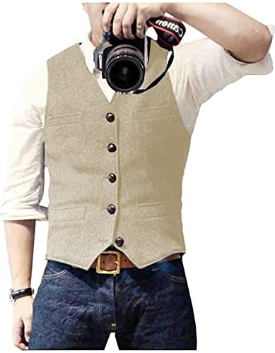 Ceehuteey Mens Suit Vest Waistcoat Tweed Retro V Neck Wool Herringbone for Prom