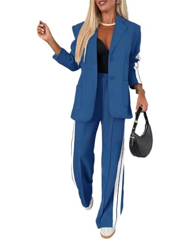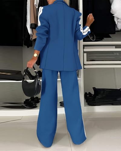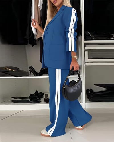 CHICME Womens Two Piece Outfits Striped Side Button Blazer and Pants with Pockets Sets Business Casual Pant Suits Set