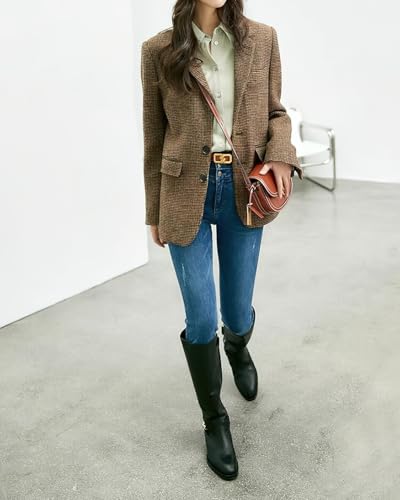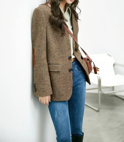 chouyatou Women’s Fall Winter Wool Business Casual Blazer Jacket Single Breasted Plaid Dressy Work Coat