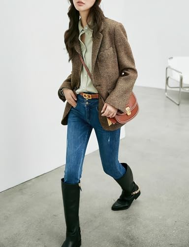 Specification: chouyatou Women’s Fall Winter Wool Business Casual Blazer Jacket Single Breasted Plaid Dressy Work Coat