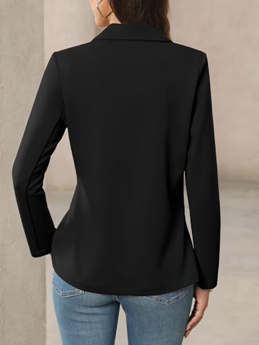 ELLEVEN Women’s Business Casual Open Front Blazers, Stretchy Knit Long Sleeve Blazer Work Office Suit Jackets