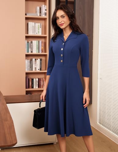 GRACE KARIN Fall Work Dresses for Women 2025,3/4 Sleeve Business Dress with Pockets,A-Line Office Professional Dresses