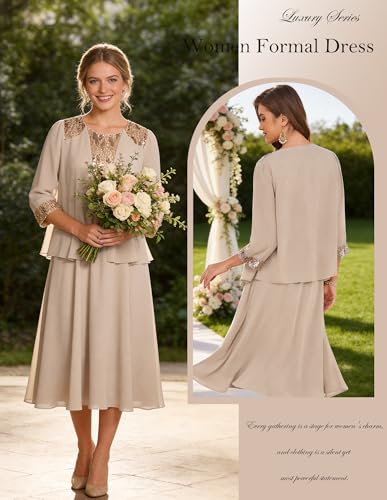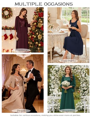 Specification: GRACE KARIN Wedding Guest Dress,Mother of The Bride Dresses,Two Piece Formal Sequin Dress with Jacket Tea Length 2026