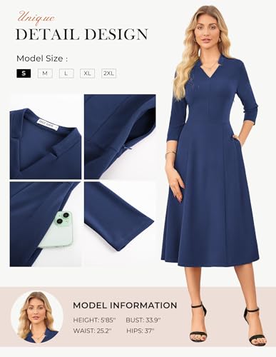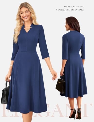 GRACE KARIN Work Dresses for Women 2025,Midi Business Dress,3/4 Sleeve Classy Fit and Flare Dress with Pocket
