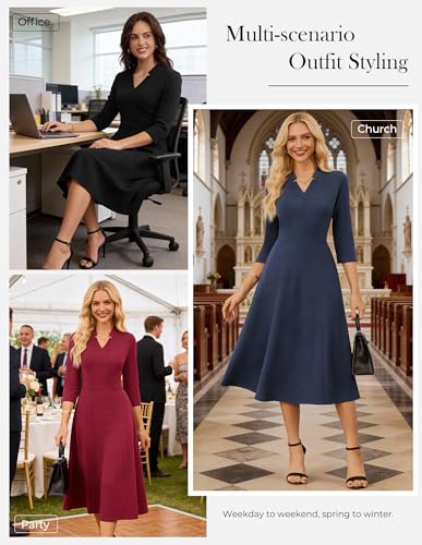 Specification: GRACE KARIN Work Dresses for Women 2025,Midi Business Dress,3/4 Sleeve Classy Fit and Flare Dress with Pocket