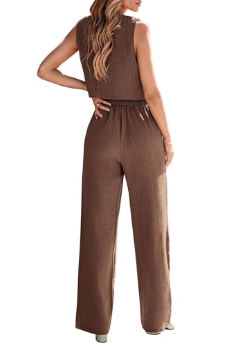 KIRUNDO Womens Two Piece Outfits Summer Fashion Button V Neck Crop Vest Blazer and Wide Leg Pants Suit Matching Sets