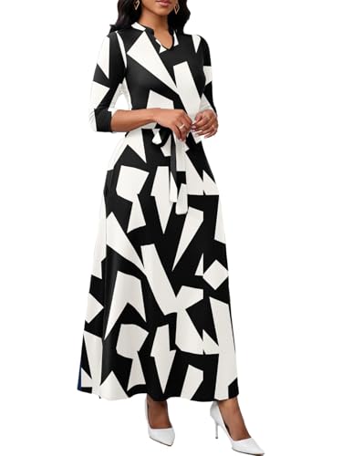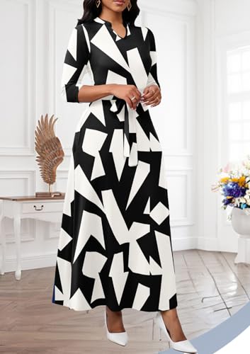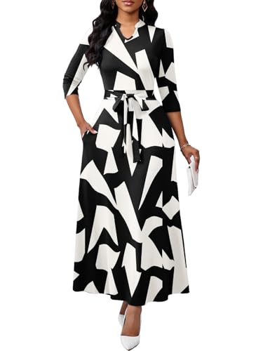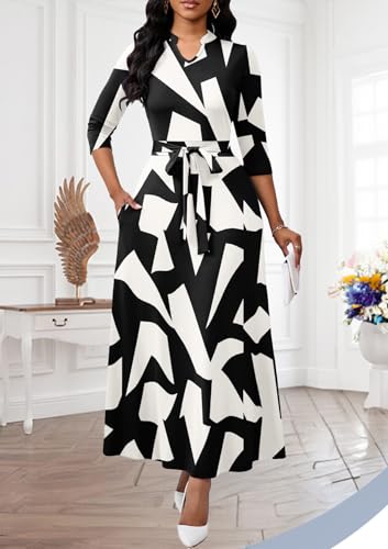 Maxi Dresses for Women Semi Formal Long Dress 3/4 Sleeve Casual A-line Church Dresses with Pockets