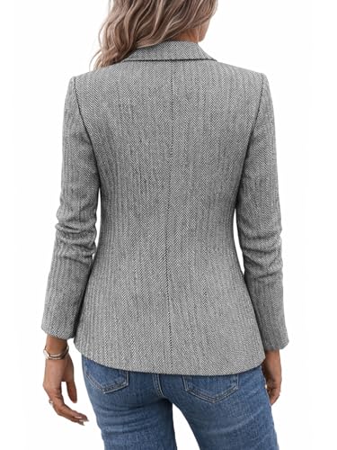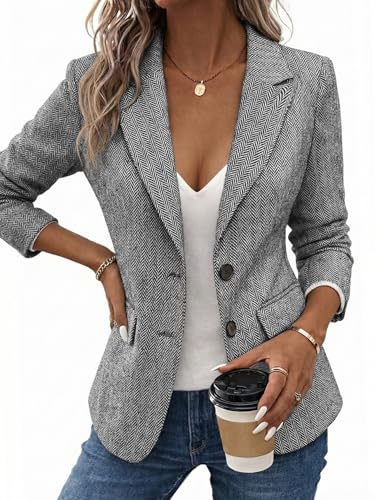 Specification: Mina Self Women’s 2026 Spring Herringbone Tweed Blazer Jacket – Notched Lapel Fully Lined Work Office Coat with Pockets