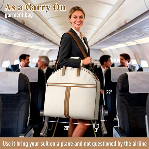 Specification: MISSLO Carry on Garment Bags for Travel for Women 56″ Foldable Dress Bag with Large Pockets Bag Suit Luggage Garment Bag with Shoulder Strap for Business, Wedding, Hanging Clothes, Beige