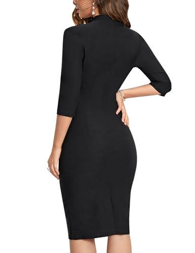 MUXXN Women’s 1950s Retro 3/4 Sleeve V Neck Midi Sheath Vintage Cocktail Work Pencil Dresses