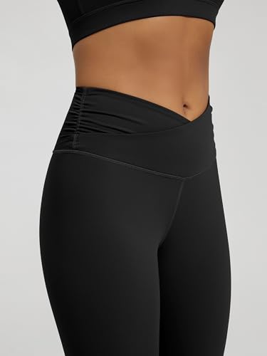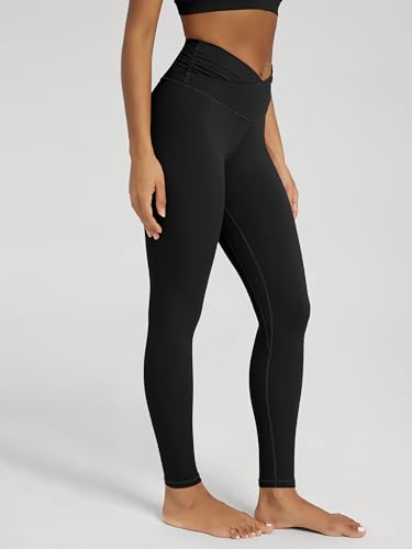 ODODOS Women’s Cross Waist Yoga Leggings with Inner Pocket, 23″/25″/28″ Gathered Crossover Workout Yoga Pants