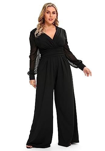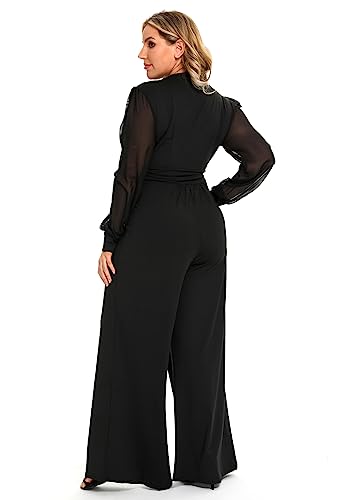 Specification: RED DOT BOUTIQUE 701 – Plus Size Mesh Long Sleeve V Wrap Neck Wide Leg Pants One Piece Jumpsuit