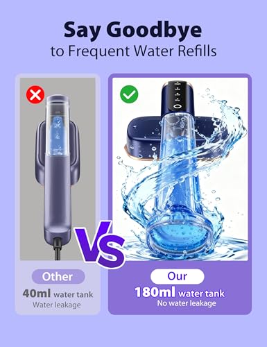 Upgraded 180ml Water Tank:This portable garment steamer features a large 180ml removable water tank, providing 35 minutes of continuous steam to minimize frequent refills. The transparent tank offers clear water level visibility for precise control. (Note: Wait until the indicator light stops flashing and the steamer is fully preheated before use to prevent leaks.)