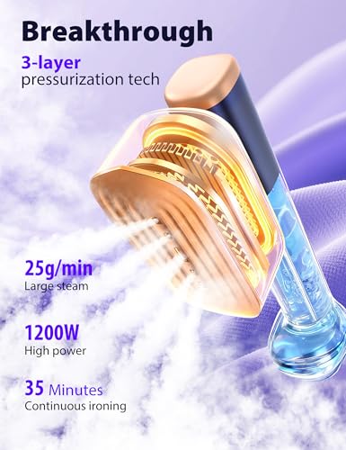 Specification: Travel Steamer for Clothes with 180 ml Water Tanks,15s Fast Heat-up,24 g/min Strong Steam Performance, Portable Garment Steamer with Touch Control, LED Display, Steam Iron(Blue Gold)
