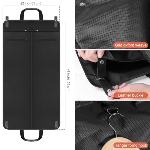 Univivi 43″ Garment Bags for Travel, Heavy Duty Suit Travel Bag for Men&Women, Foldable Garment Bags for Hanging Clothes with 5 Zipper Pockets for Suit, Coats, Shirt,Short Dress