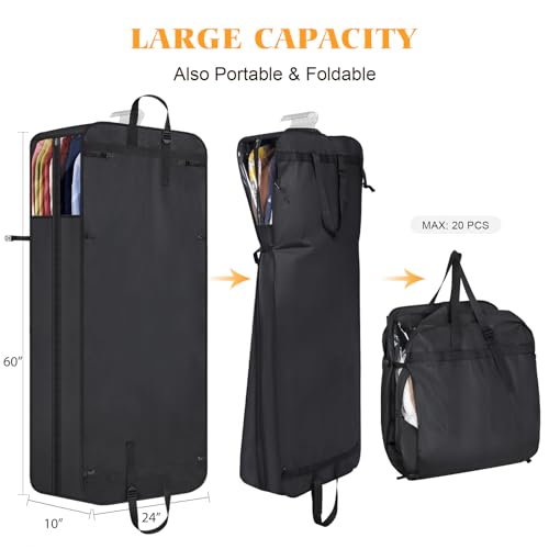 Univivi Hanging Garment Bag for Travel, 60″ Heavy Duty Suit Bags, Extra Capacity Hanging Clothes Bag for Closet Storage, Dress Cover with Handles and Buckle Straps for Suit, Coat, Jacket