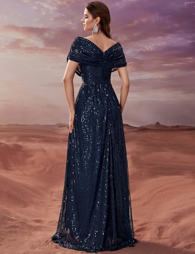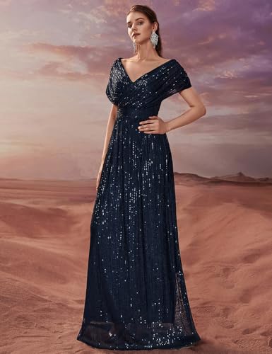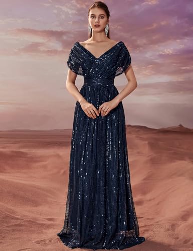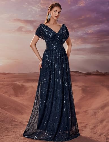 Women’s Sequin V-Neck Short Sleeve A-Line Evening Dress Elegant Evening Dresses Party Gowns