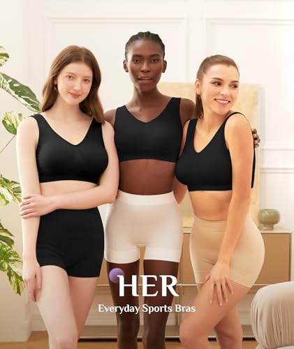 YADIFEN Womens Sports Bras, 3/4/6 Pack Wireless Comfortable Seamless Sleep Yoga Sports Bras for Women with Removable Pads