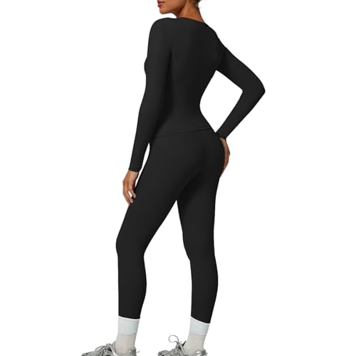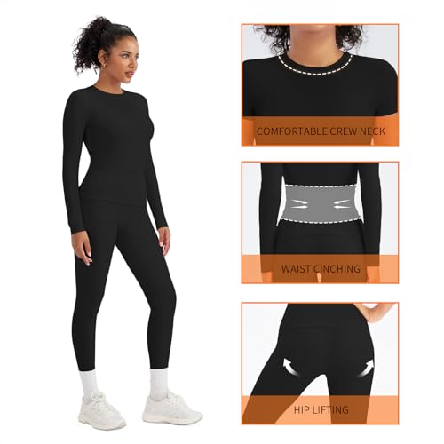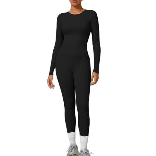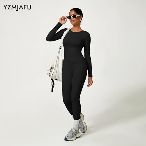 YZMJAFU Women‘s Yoga Sets, 2 pcs Seamless Athletic Pants Set for Women, Stretch Yoga T-Shirt and High Waisted Yoga Leggings